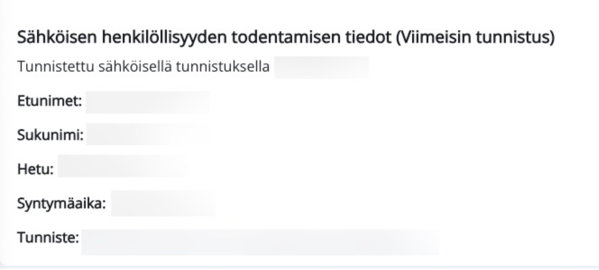 - Sähköisen henkilöllisyyden todentamisen tiedot