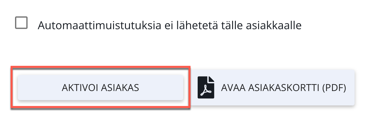 Passiiviset > Asiakkaat > ko asiakas > Asiakkaan tilatiedot > Aktivoi asiakas
