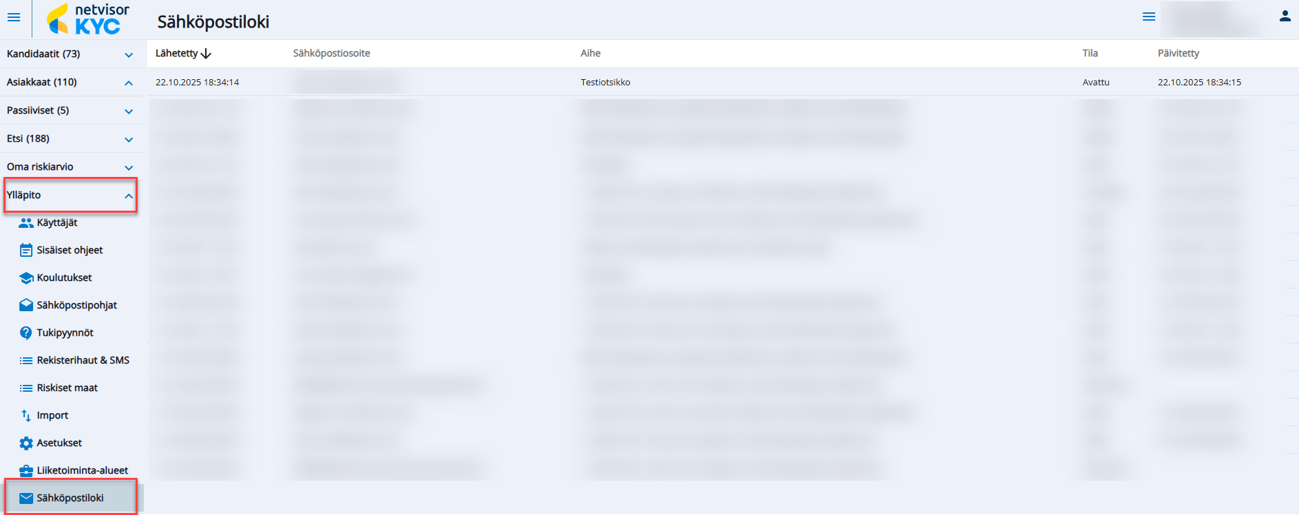 (Ylläpito > Sähköpostiloki)